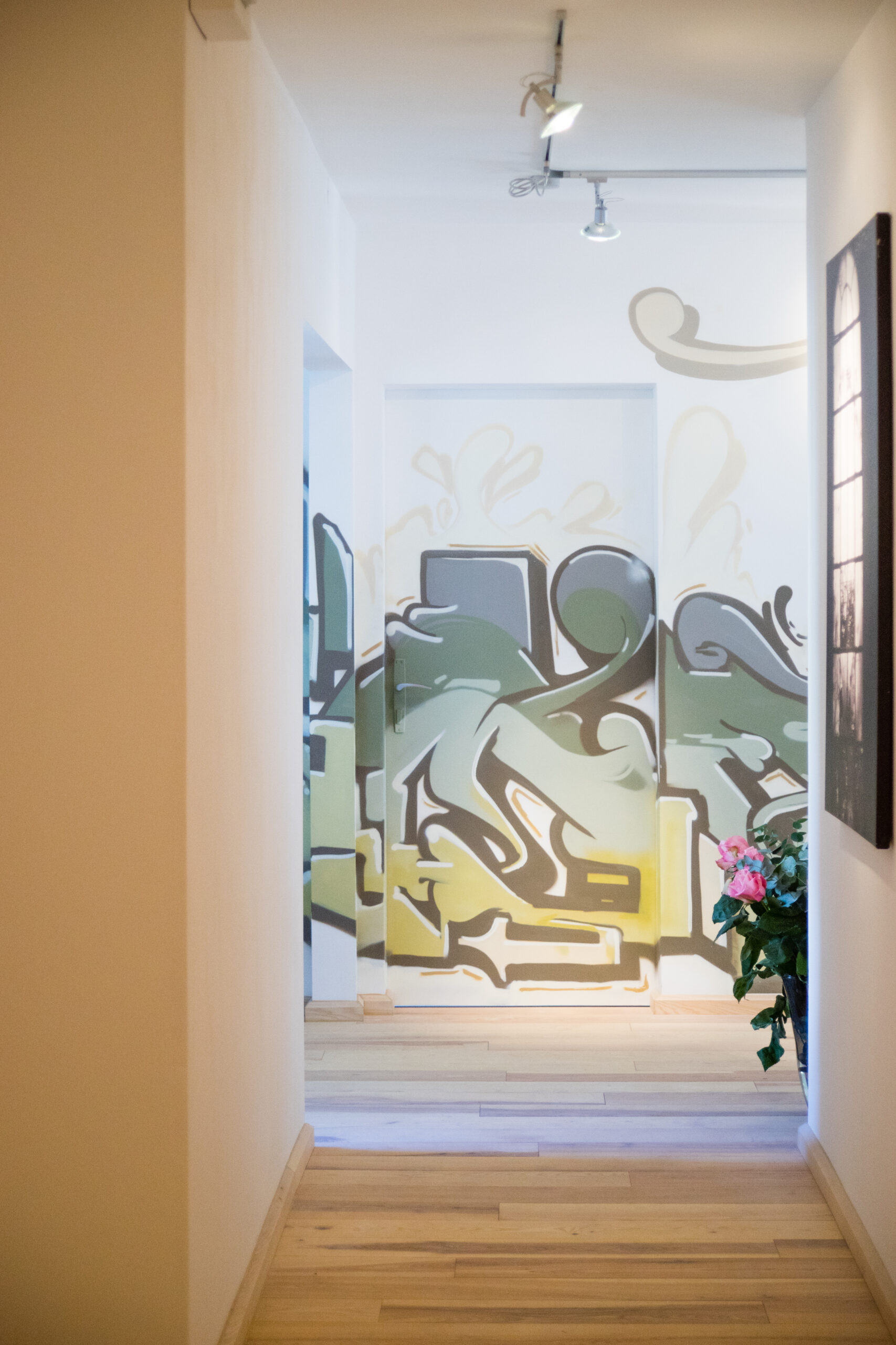 Erleben Sie einen urbanen Kurzurlaub mit einer einzigartigen Note im Gritty Getaway, einem urbanen Kunstwerk, das von einem lokalen Graffiti-Künstler geschaffen wurde. Die beruhigenden Farben und erlesenen Materialien, die in dieser einzigartigen Wohnung verwendet wurden, schaffen die perfekte Balance to den ausdrucksstarken Graffitis.